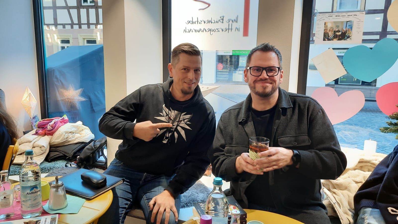 Das Beste dieses Jahr kam ganz zum Schluss: Am 28.12.2025 haben wir eine coole Abschiedslesung anlässlich der baldigen Schließung des Buch-Cafés der Buchhandlung Bücher, Medien und mehr Herzogenaurach veranstaltet. Gemeinsam mit geladenen Gästen und Freunden haben wir u.a. in Erinnerungen aus zehn Jahren in "Bernds Café" geschwelgt und lustige Szenen aus Tod an der Aurach und einem potenziellen Nachfolgeroman gelesen. Daneben hat sich der Kollege Tobias Kühnlein endlich auch in die Arena gewagt, um von seinen Wahnsinn -Büchern, Hörbüchern (gelesen von Oliver Kalkofe) und seinen Krimispielen beim Gmeiner Verlag zu erzählen sowie die eine oder andere Anekdote zum Besten zu geben. Zum ersten Mal war auch meine Familie bei einer Lesung dabei, an dem Ort, an dem die Kinder in den letzten zehn Jahren mit aufgewachsen sind - ein "Full Circle Moment" also, bei dem zum Abschluss nochmal alles zusammenkam. Ich bin sicher, dass Bernd sich freuen würde, wenn er wüsste, wie sein Traum von einem Buch-Café in der Fußgängerzone von Herzi zu einem würdigen Abschluss gekommen ist. Übrigens: Auch wenn das Buch-Café in der bisherigen Form schließt, kann man dort künftig einkehren. Die AWO übernimmt die Räumlichkeiten im Frühjahr als "Sozialcafé" und auch künftig sind dort Lesungen möglich. Ich freue mich schon darauf, wenn wir dort im März Heroes of Alcaria vorstellen! Vielen Dank an Stefanie und ihr Team für den schönen Nachmittag und vor allem für die vergangenen zehn Jahre, in denen das Café auch in schweren Zeiten für mich ein Ort des Schreibens, des Austauschs und der Begegnungen gewesen ist. Die Buchhandlung gibt es ja ohnehin weiterhin, so dass wir immer in Kontakt bleiben!