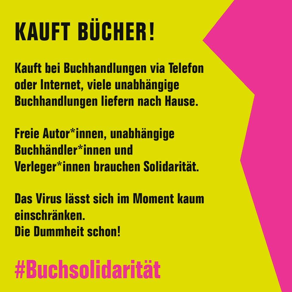 Also: #SupportYourLocals! Das sind die, die für euch auch in Zeiten der Krise da sind, das sind die, die eure Innenstädte interessant und lebenswert gestalten, und das sind nicht zuletzt diejenigen, die Ausbildungs- und Arbeitsplätze anbieten sowie in Deutschland Steuern zahlen! #buchsolidarität